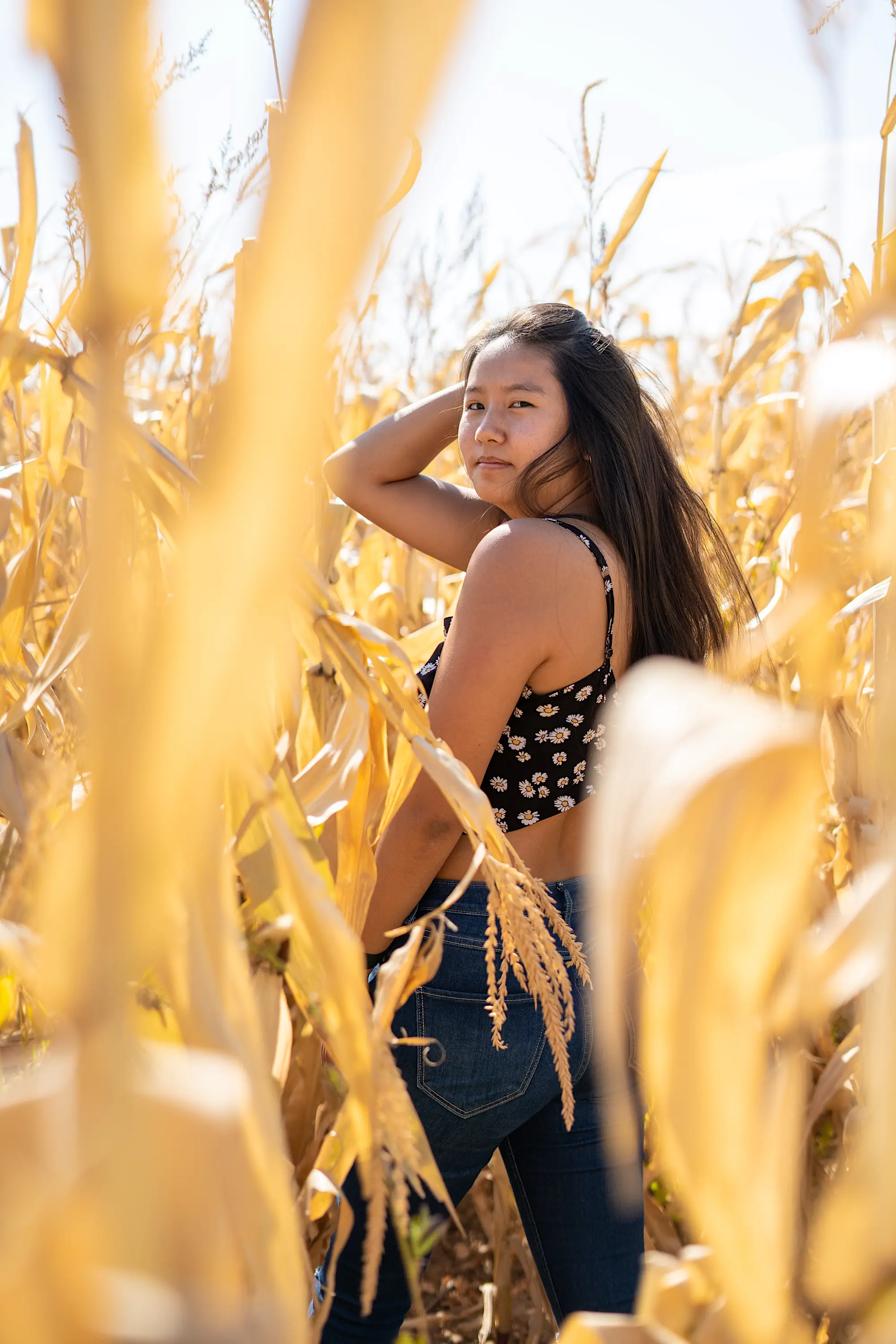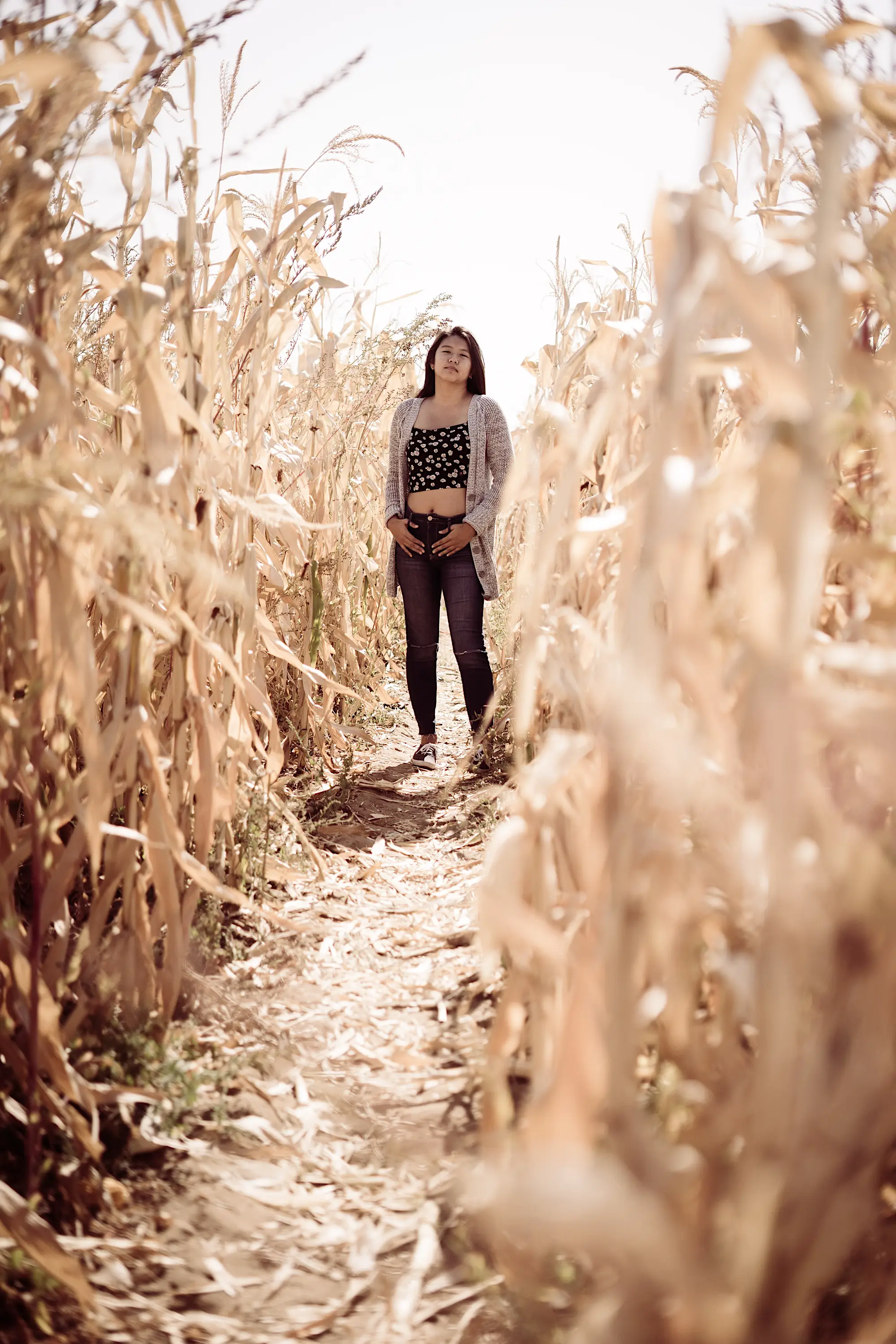 Golden hour portraits of my wife wandering through a fall harvest field and the tree-lined streets of Denver. Autumn light at its finest.